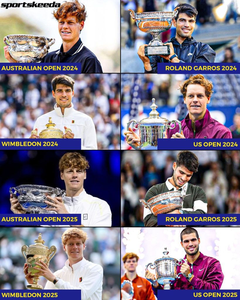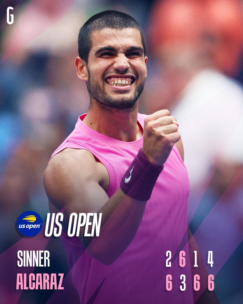 ഈ വർഷം സിന്നറും അൽക്കാരസും ഏറ്റുമുട്ടിയ തുടർച്ചയായ മൂന്നാം ഗ്രാൻസ്ളാം ഫൈനലായിരുന്നു യു.എസ് ഓപ്പണിലേത്. നാലുസെറ്റ് നീണ്ട പോരാട്ടത്തിനൊടുവിൽ മനോഹരമായൊരു എയ്സിലൂടെയാണ് 22കാരനായ കാർലോസ് വിജയം കുറിച്ചത്. സ്കോർ : 6-2,3-6,6-1,6-4.